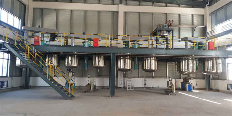 立體布置,三層溶劑自動(dòng)配料、固化劑生產(chǎn)、二層木器漆生產(chǎn)、固化劑稀釋釜、稀釋劑混合釜;一層過(guò)濾+自動(dòng)化包裝。