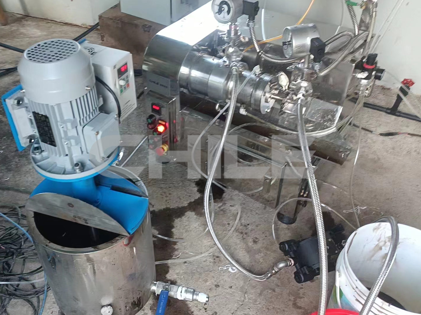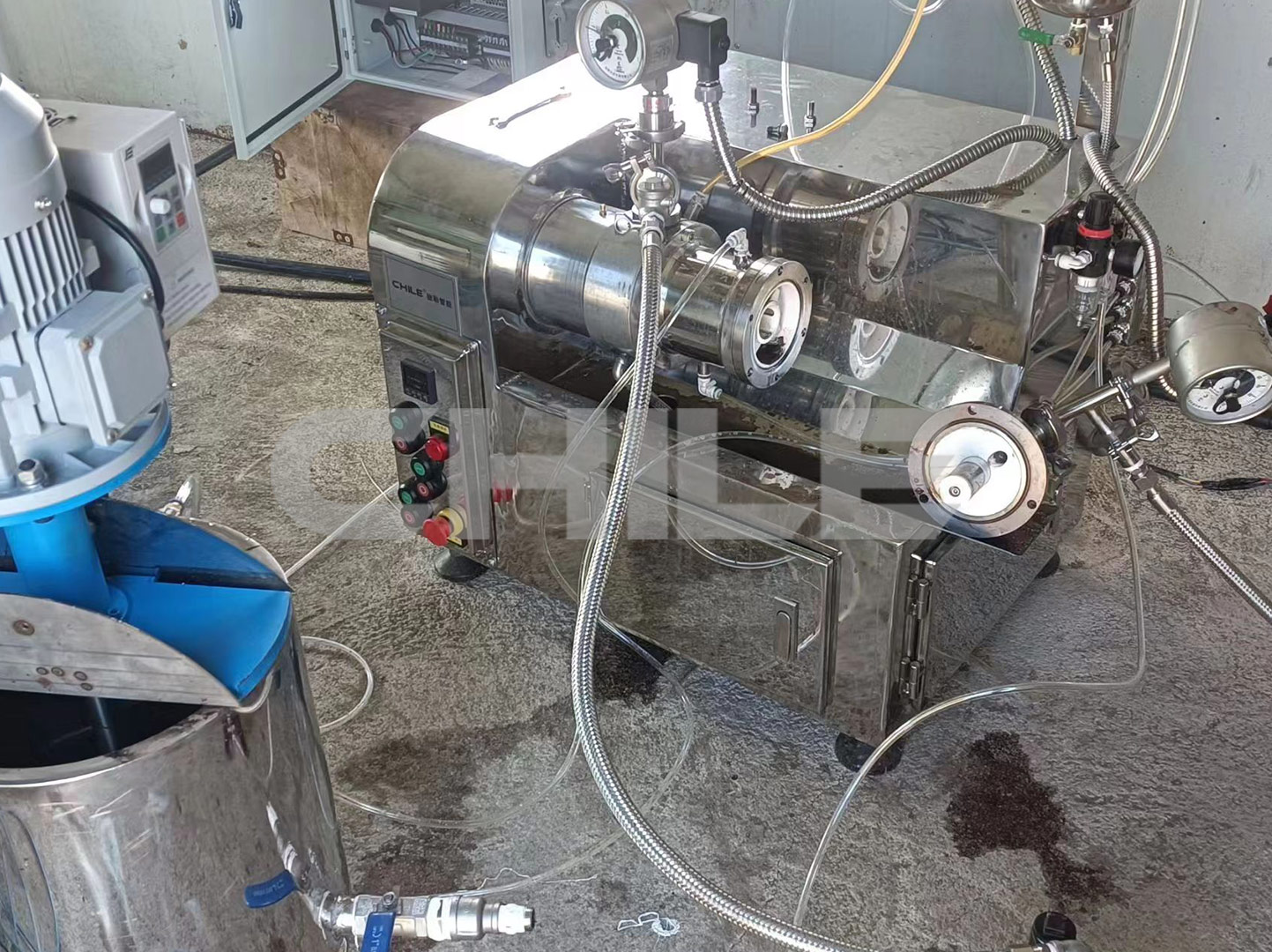 浙江某水產科技公司1L 實驗室納米砂磨機調試成功