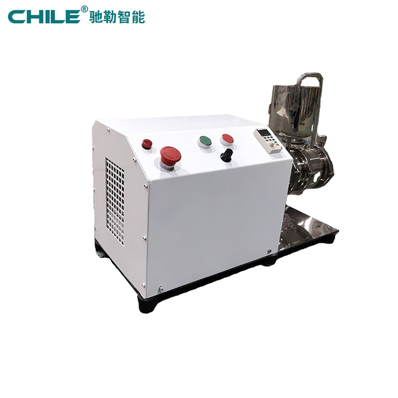 所配料桶及研磨腔體帶冷卻水夾套,在設備運行時通水冷卻,起到很好的冷卻效果,常規(guī)溫升小于10º。