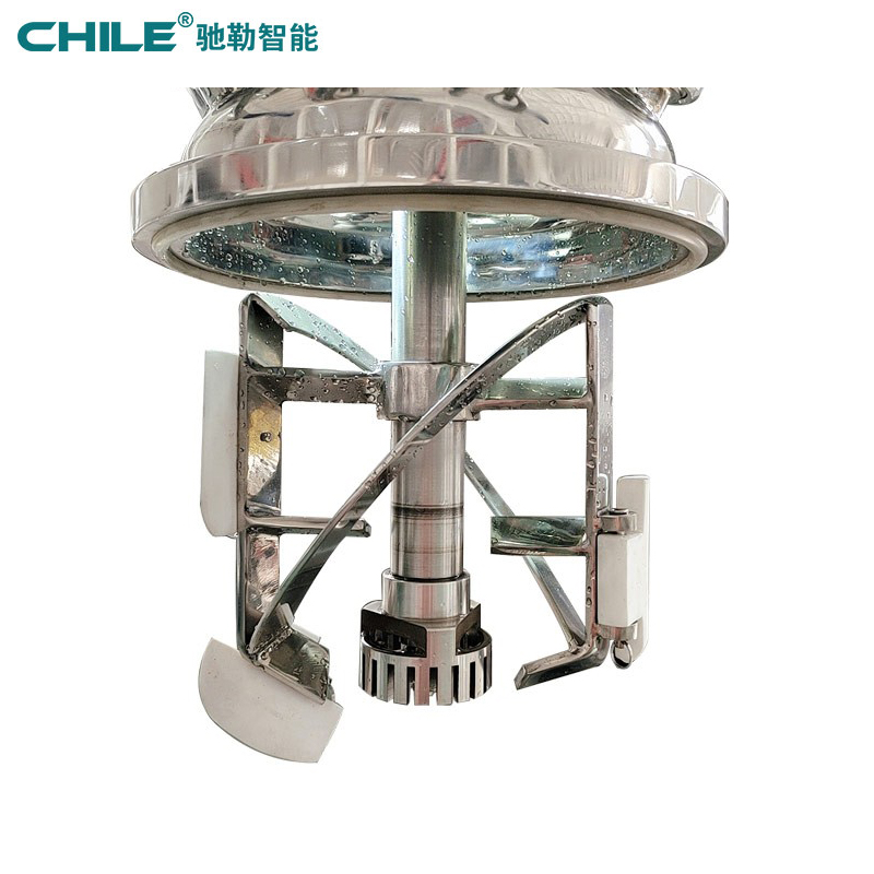 雙向攪拌機構,框式攪拌或聚四氟乙烯刮板攪拌設計,可大大增加筒內液料的循環,渦流及翻動,促進物料均質、分散、乳化,實現360度無死角攪拌,提高物料的充分利用率