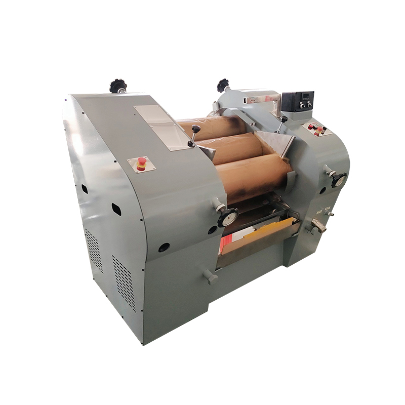 三輥研磨機主要用于各種油漆、油墨、顏料、塑料等行業中高粘度物料的細化。特別適用于加工粘度高而粒度要求細的產品,是目前濕法研磨設備中研磨細度高的設備之一。三根輥筒的表面相互擠壓以及不同的轉速造成的摩擦,使得相鄰軋輥產生強烈剪切力迫使物料被充分分散、研磨。