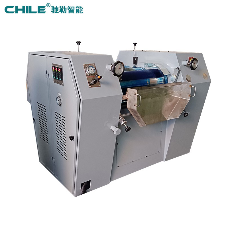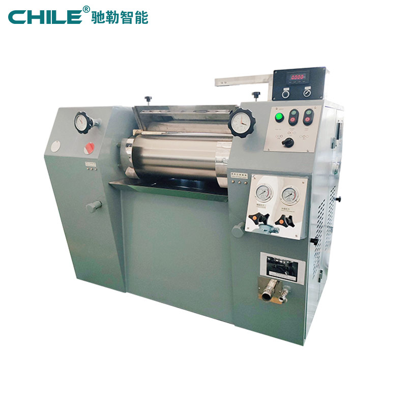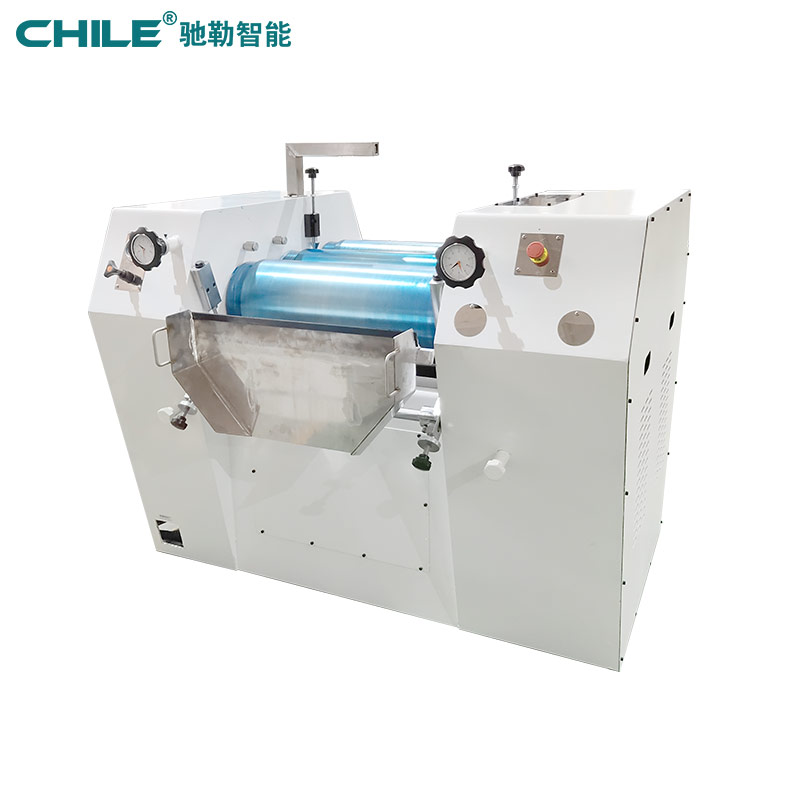加料裝置把所需研磨的物料倒入慢輥與中輥進行第一次擠壓研磨,再轉入與快輥作第二次研磨,經二次研磨后,由出料刀片鏟下,完成一個工作過程。物料在三根輥筒之間多次地被混合、研磨從而達到物料的細度等要求。研磨的次數與細度,一般與物料的質量與前道工序的好壞有直接的關聯。