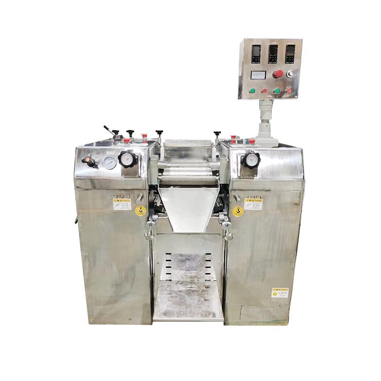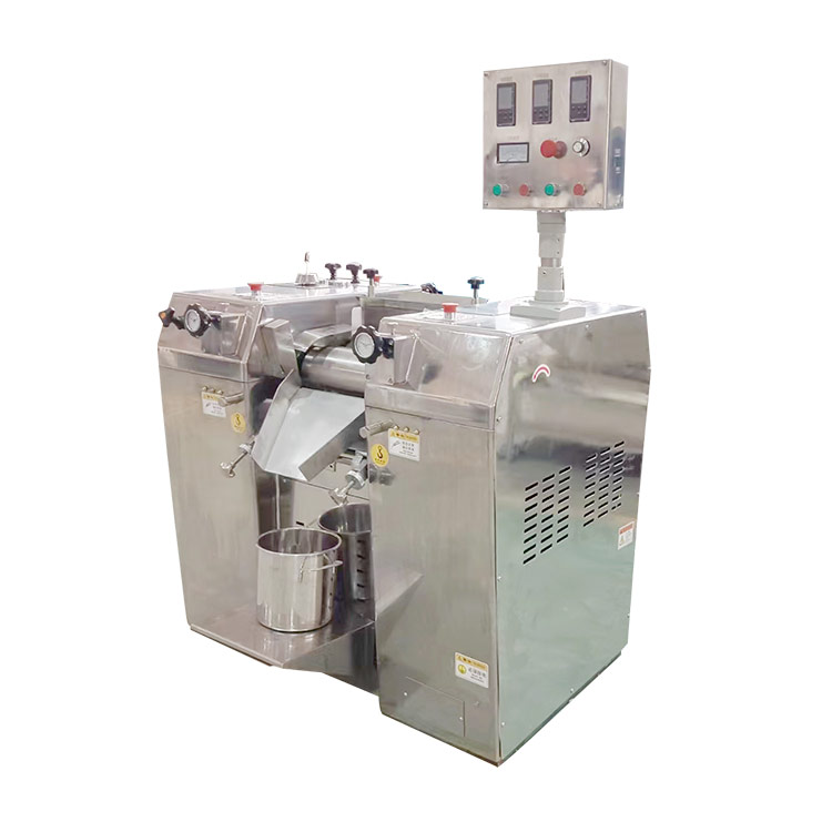 三輥在研磨物料的過程中,通過機器斜排列或水平排列的三根輥筒的表面相互擠軋及不同速度的摩擦而達到研磨作用。對于一般被研物料來講,可根 據其他原始細度和硬度,在三輥中可進行一次、兩次或更多次研磨,*終達到該產品需要的細度。