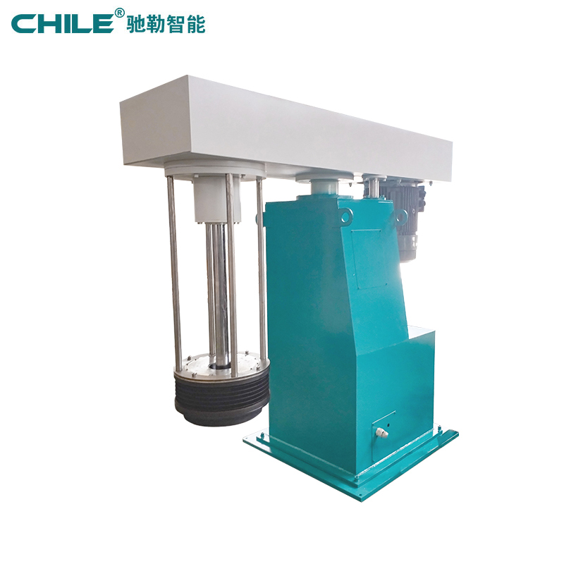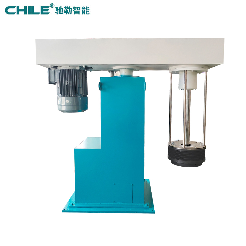液壓升降籃式研磨機(jī)電機(jī)運(yùn)轉(zhuǎn)帶動撥桿和底部分散盤高速旋轉(zhuǎn),使分散盤上部及籃腔內(nèi)部形成真空,漿料被吸入籃式研磨腔內(nèi)。撥桿驅(qū)動腔內(nèi)的研磨介質(zhì)產(chǎn)生向各個方向的力,物料中的顆粒受到介質(zhì)不斷地碰撞及摩擦,粒徑變小,粒徑范圍變窄;分散盤的高速運(yùn)轉(zhuǎn),產(chǎn)生渦流將腔內(nèi)物料抽吸出來,再循環(huán)至進(jìn)料,具有非常顯著的分散混合效果,通過液壓泵工作驅(qū)動液壓柱塞升降,帶動整個傳動機(jī)構(gòu)和研磨裝置升降。