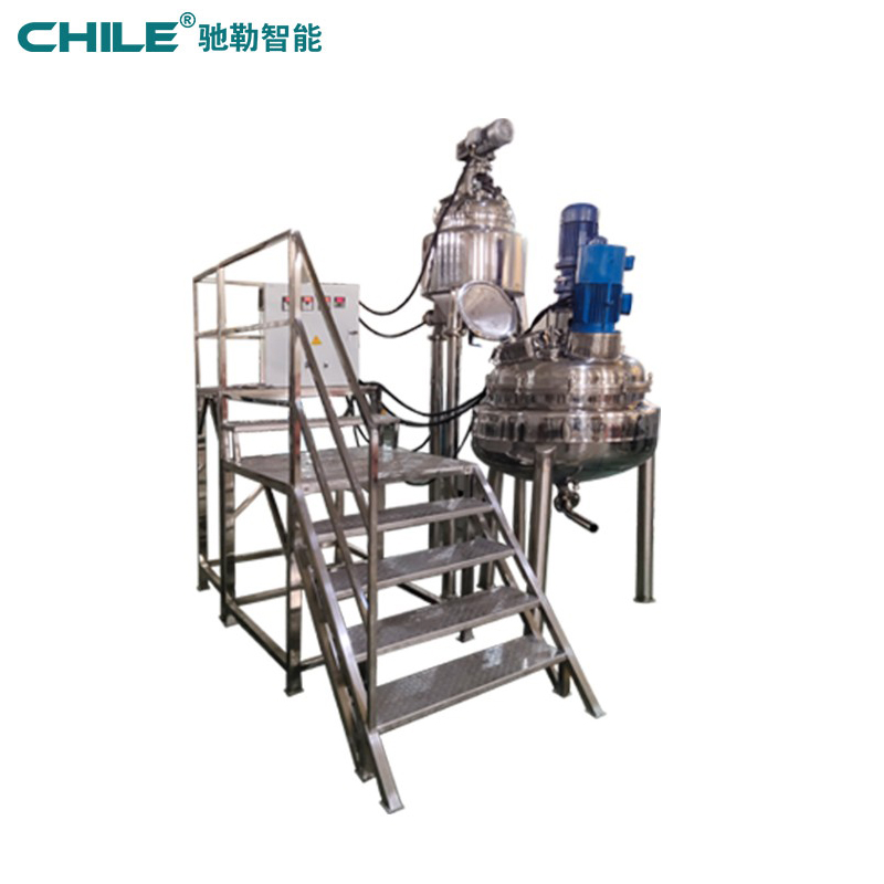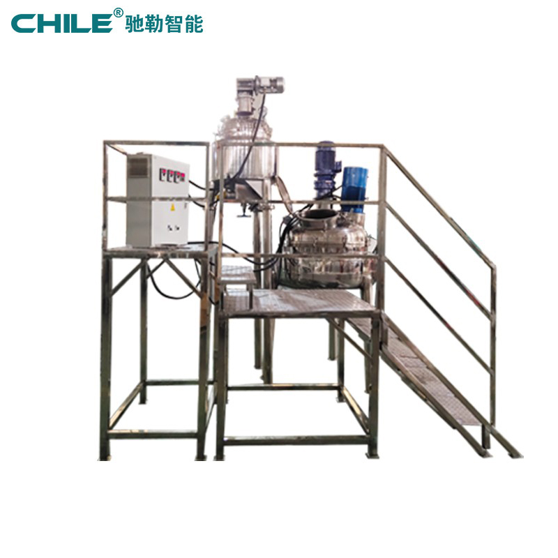 攪拌槳葉在動力機組的驅動下,沿固定方向旋轉;在旋轉過程中,驅使物料做軸向旋轉和徑向旋轉。攪拌機內的物料,同時存在軸向運動和圓周運動,因而同時存在剪切攪拌和擴散攪拌等幾種攪 拌形式。能夠有效的對物料進行快速的攪拌、混合。分散盤通過高速運轉,使物料呈環狀流,產生強 旋渦,呈螺旋狀下降到渦流底部。粒子間產生強烈的剪切撞擊與摩擦,達到迅速分散、溶解功能。攪 拌盤通過圓周運動,產生較好的徑向作用里,加速物料循環,提高分散效率。乳化機頭精密的加工工 藝,轉、定子之間高度配合。強勁的馬達進行高速旋轉使轉、定子之間形成真空,物料從轉、定子上部和底部吸入。強大動能使轉子產生極高的線速度,使物料在轉、定子間隙之間經過強烈的撞擊、破碎、離心擠、液層摩擦、強力剪切之后飛射出去,在多種不同方向力的作用下,產生強大紊流。物料在適量乳化劑和成熟工藝下經過一定時間反復循環解聚、分散、均質、細化、剪切產生穩定乳狀液。