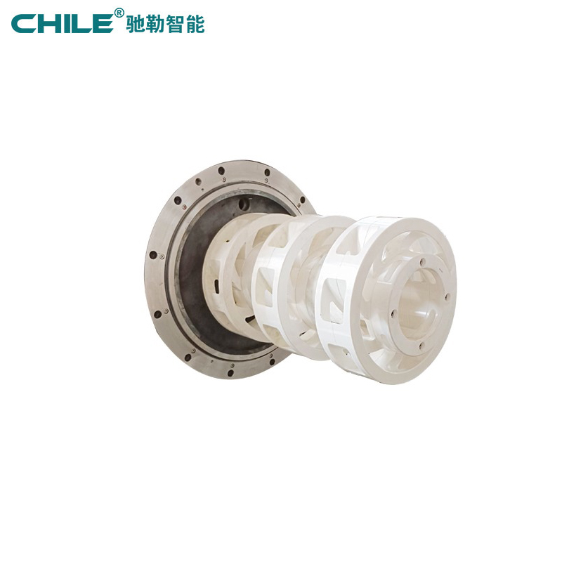 渦輪分散器徑向的壓力差,使得粒子流不需強烈接觸分散器即可獲取極強的蝸旋力,,避免傳統結構中強烈撞擊所產生過多的熱能耗損。同時提高了破碎當量,延長了分散器的壽命。