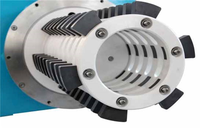 高能量比: 新型棒銷式研磨轉子,集中動能給予磨珠大的能量比。提高研磨效率與細化程度,同時減小物料在磨腔內的阻力,更適用于中高粘度超細化要求的物料。 高效長徑比: 高